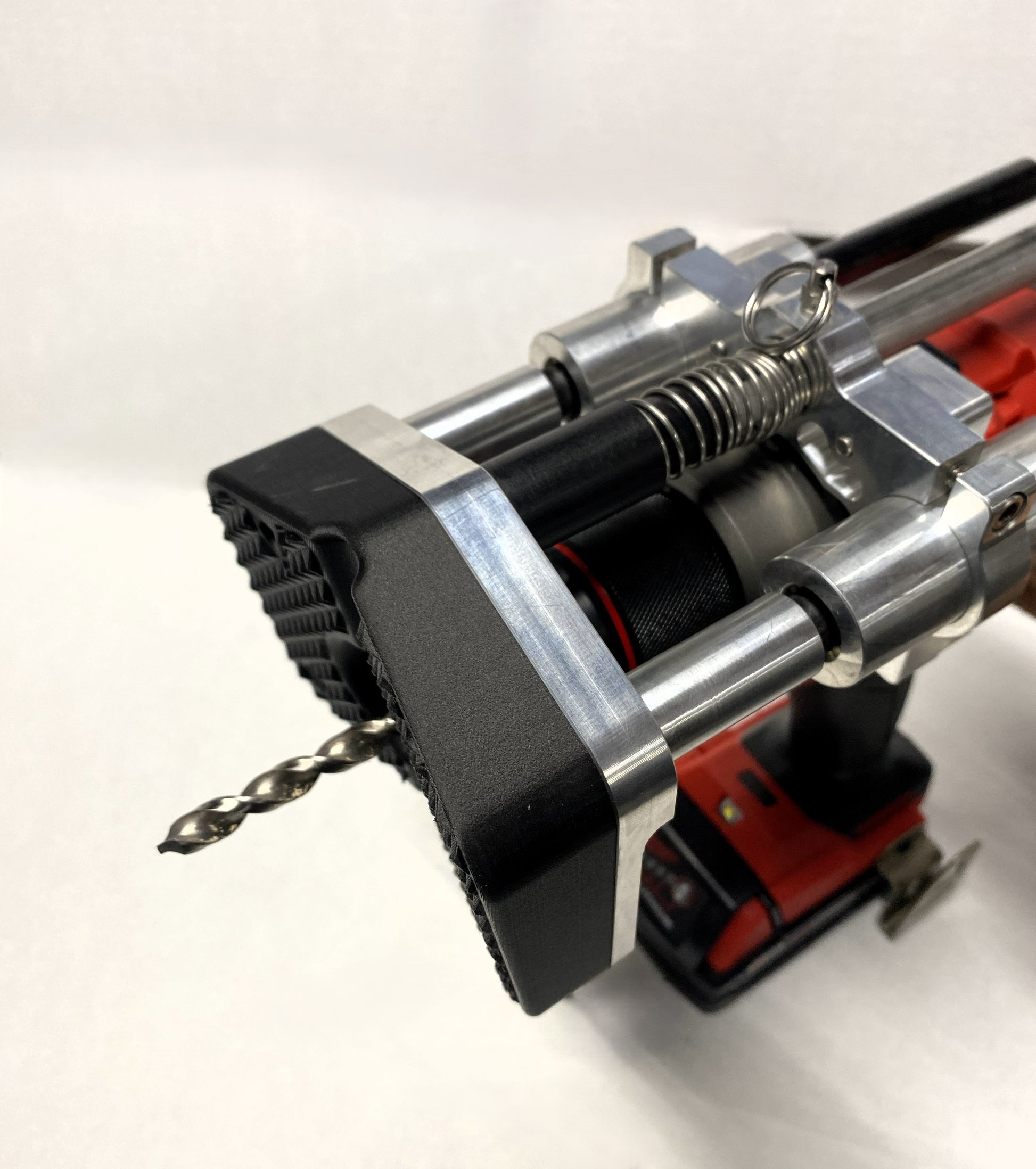 With its modular design you can easily remove the faceplate and guide rods without the use of tools to access your chuck or use the drill without the guide. This can be handy for tapping in obscure spots where the guide may get in the way.